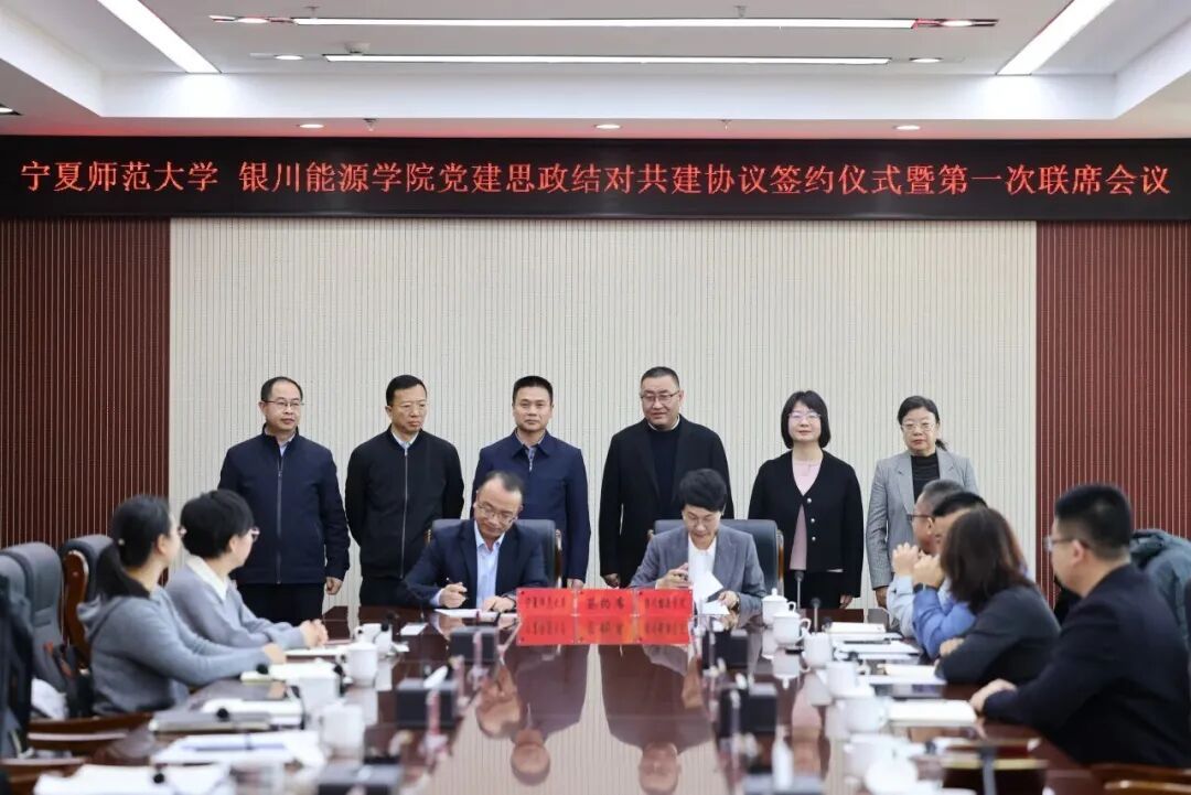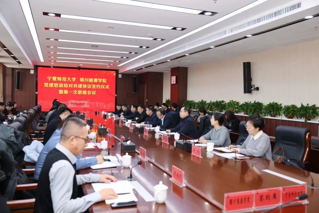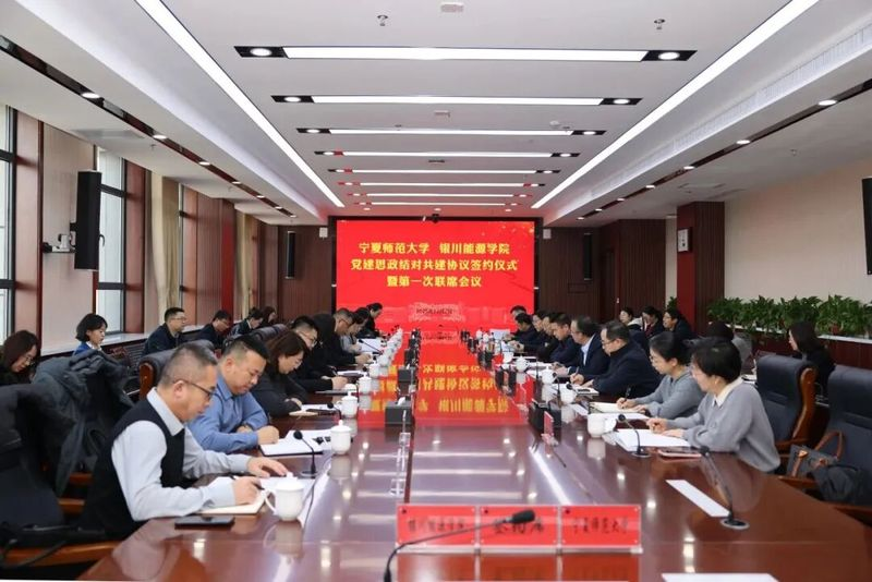 两校党委领导班子成员及相关部门负责人、思政课教师代表参加活动。会上,陈志勇对银川能源学院一行表示欢迎,充分肯定该校在应用型人才培养和服务地方发展方面取得的成就。他指出,此次共建是落实党中央和自治区党委决策部署的重要举措,宁夏师范大学将秉持"真诚合作、务实高效"原则,推动双方在立德树人、资源共享等方面深度合作。