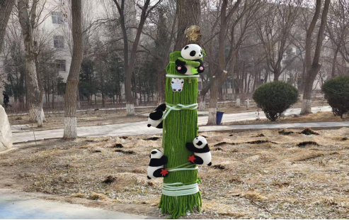 树干披上了斑斓的针织外衣,
