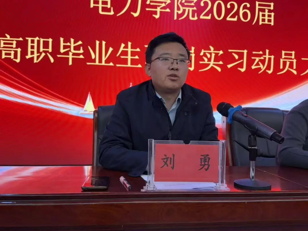 随后,电力学院副院长刘勇强调顶岗实习是高职教育“工学结合”的核心环节,是将理论知识转化为实践技能的关键桥梁。结合电力行业发展趋势与企业人才需求,刘勇希望同学们珍惜实习机会,以严谨务实的态度钻研专业技能,在岗位上锤炼本领、增长才干;同时叮嘱大家严守企业规章制度与安全操作规程,树立安全第一的意识,展现电力学子的责任与担当。