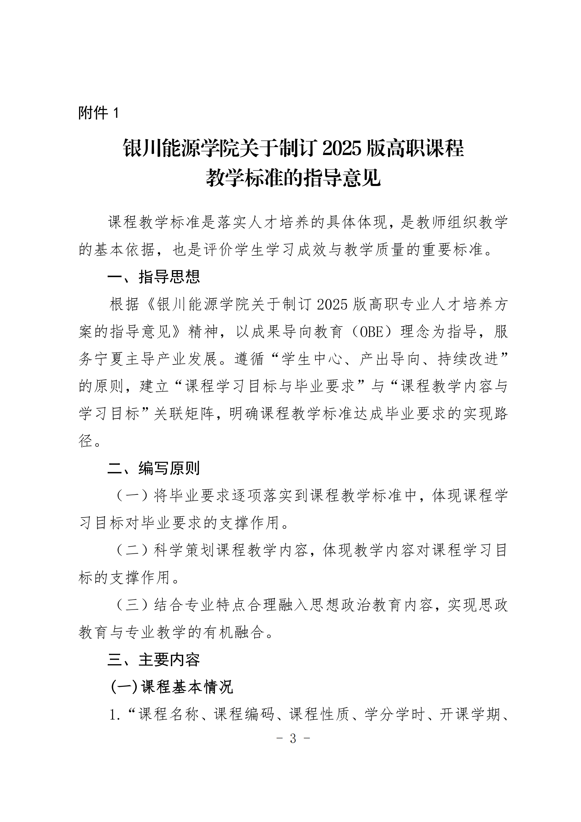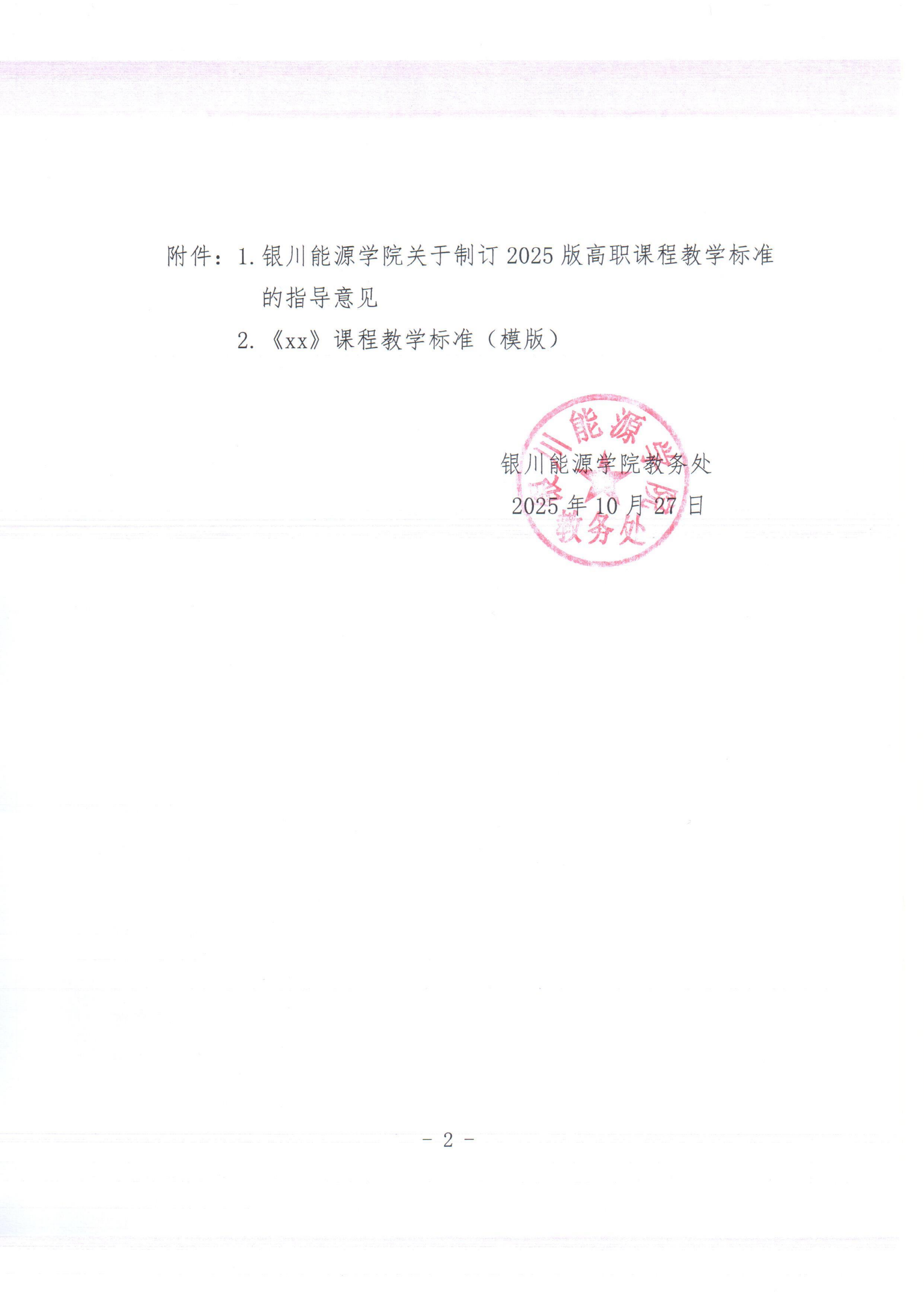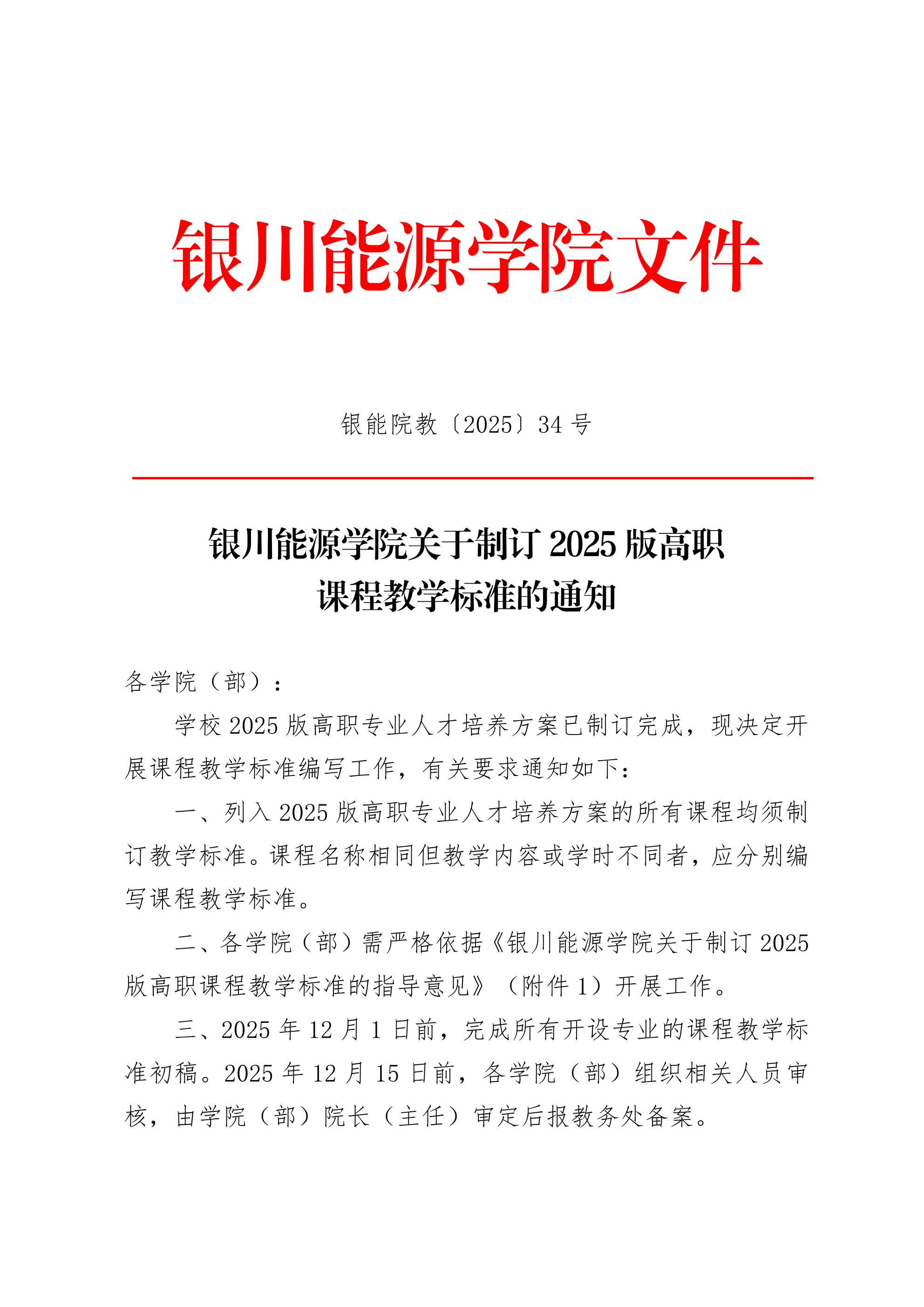 银川能源学院关于制订2025版高职课程教学标准的通知