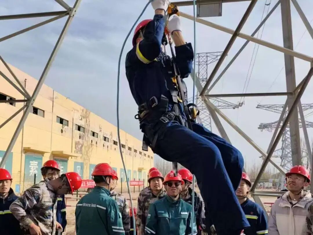 实习内容聚焦电力系统核心技能与应急处置能力。在输电线路实训区,学员们在导师指导下开展高空作业训练,模拟输电塔检修场景。安全绳索固定、登塔动作规范、高空设备操作……每一步骤都严格按照行业标准执行,部分学员成功登顶后展示胜利手势,彰显了青年学子的担当与活力。