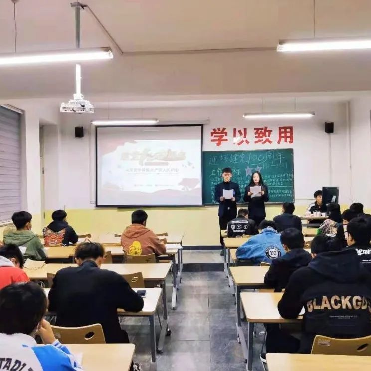 活动中各班团支部书记首先向团员青年们讲述了中国共产党的建党历史。通过回顾党的艰苦岁月,让同学们更加深刻的了解到那段充满战争硝烟的历史,感受到老一代共产党员们的伟大与艰辛。随后,各班团支部通过诗歌朗诵、唱歌、演讲的形式,传颂红色经典,感受革命先烈的千古豪情,领会共产党人坚定的革命信念与美好的革命理想。