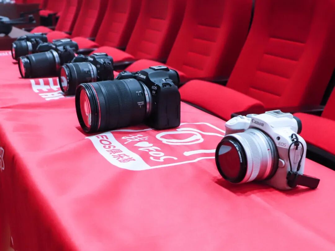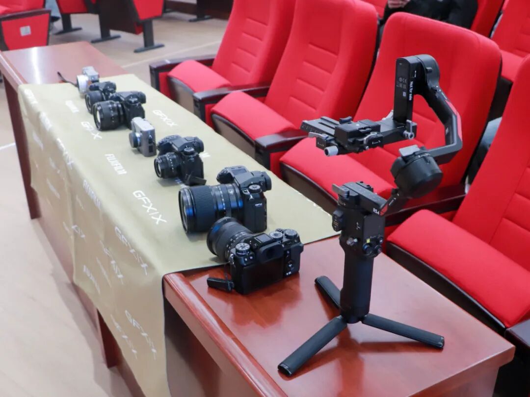 活动伊始,佳能精心布置的设备展示区便点燃了现场氛围。从轻巧便携的微单相机、功能强大的专业单反,到能捕捉“上帝视角”的大疆无人机,一系列前沿影像器材牢牢吸引了同学们的目光。大家纷纷驻足围观、亲手操作,在沉浸式体验中直观感受科技为影像创作赋予的无限可能。