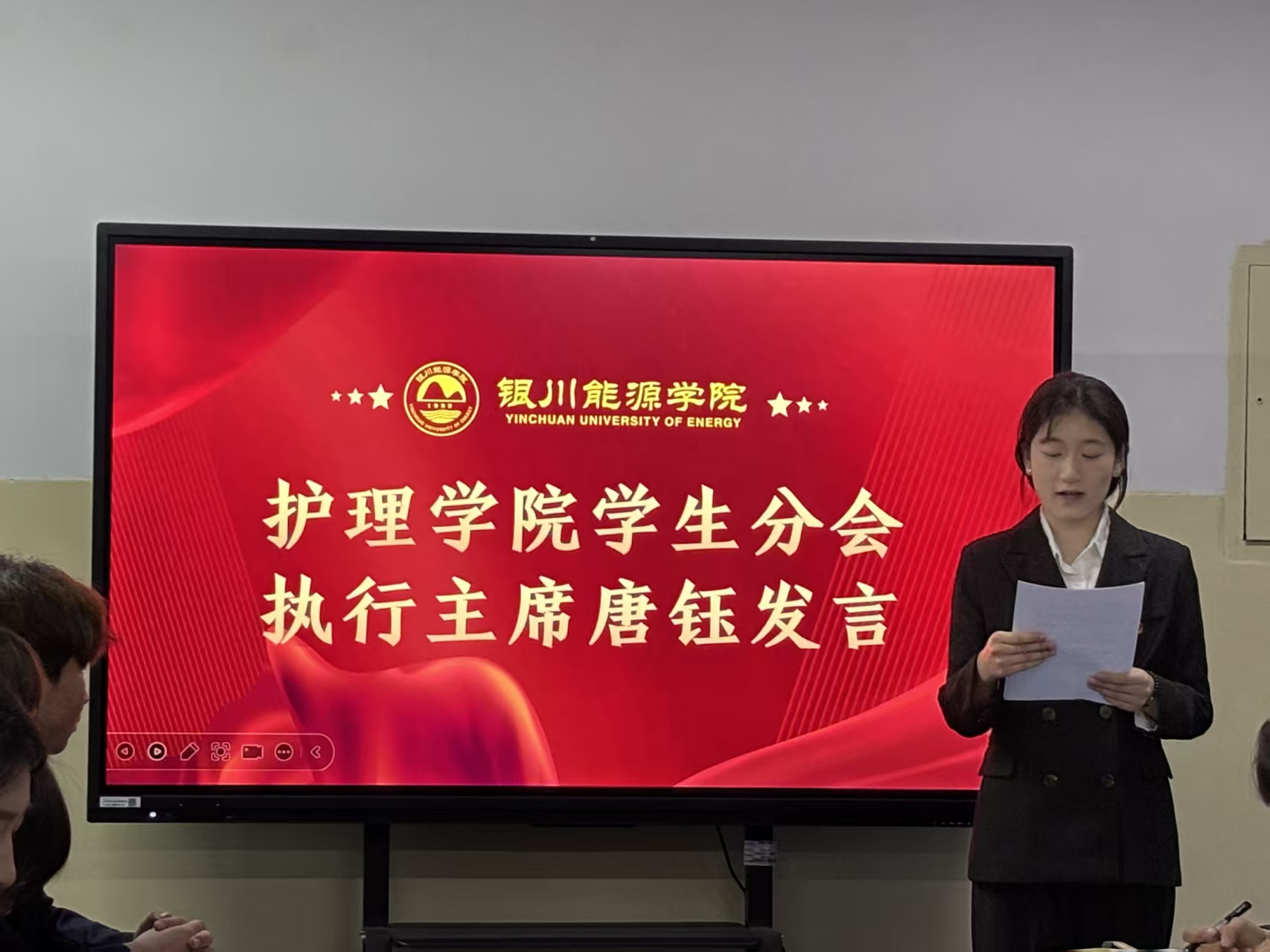 学生分会执行主席唐钰同学紧随其后,围绕活动组织、日常事务管理、服务同学等关键职能,详细汇报了学生分会的学期工作亮点。她表示,每一份成绩的取得都离不开全体成员的并肩作战,未来将持续优化工作方法,提升服务效能,更好地搭建学院与学生的沟通桥梁。
