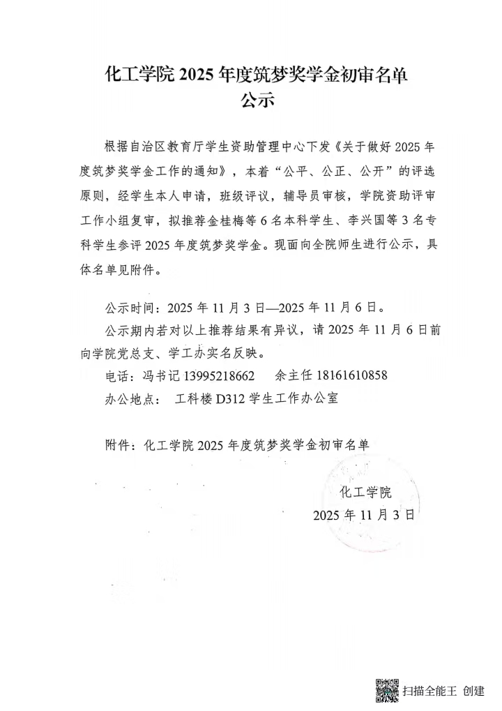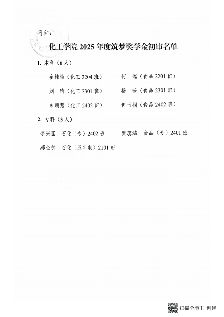 化工学院 2024-2025 学年学生先进个人和先进班集体评选结果公示