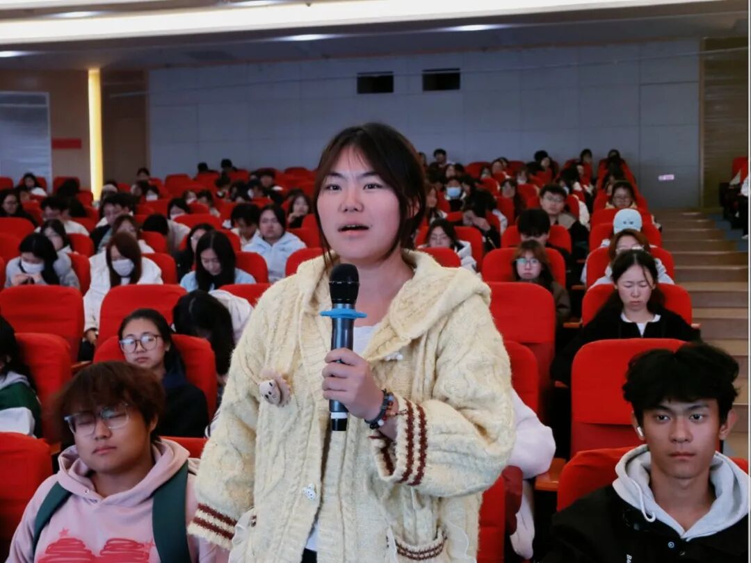 互动交流中,有同学提问 “如何坚定入党信念”。党员刘晶结合自身入党经历,分享思想成长心得。她提出,坚定理想信念需源于对时代的认识与责任担当,靠持续学习和实践筑牢。此次分享,让在场同学更深理解新时代青年使命担当。