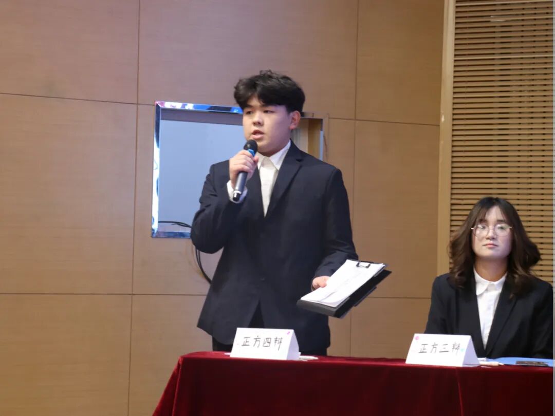 赛场上,两支参赛队伍身着统一服装,精神抖擞、斗志昂扬,展现出饱满的竞技状态。立论环节中,双方辩手紧扣辩题核心,观点鲜明且立场坚定,以清晰的逻辑架构、精炼的语言表达和扎实的知识储备,系统阐述己方观点,展现出独到的思维视角与深度思考能力;攻辩与自由辩论环节更是将比赛推向高潮,辩手们反应敏捷、言辞犀利,精准捕捉对方论点漏洞展开反驳,你来我往间妙语连珠、逻辑缜密,思维的火花在唇枪舌战中持续碰撞,充分彰显了当代大学生锐意进取的青春朝气与求真务实的思辨风采,赢得现场观众阵阵掌声。
