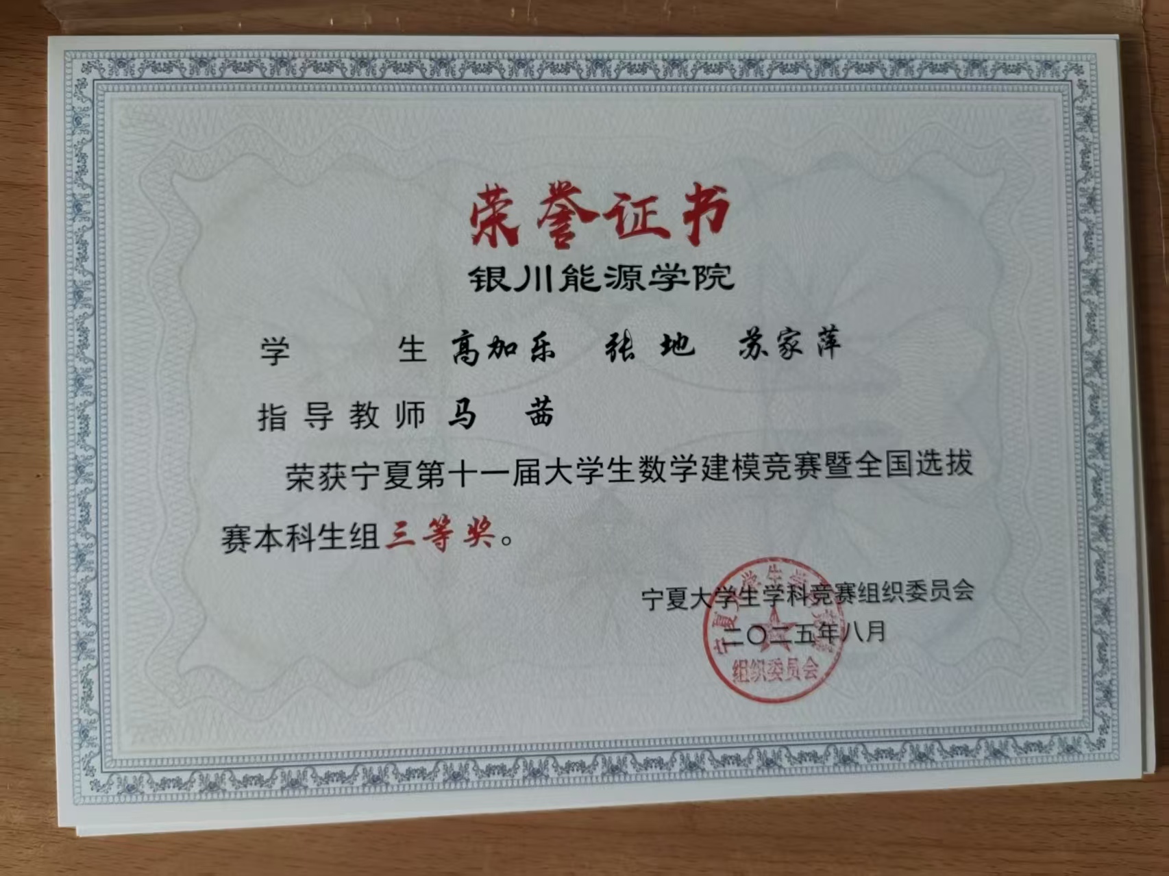 我校多名学生荣获宁夏第十一届大学生数学建模竞赛暨全国选拔赛奖项