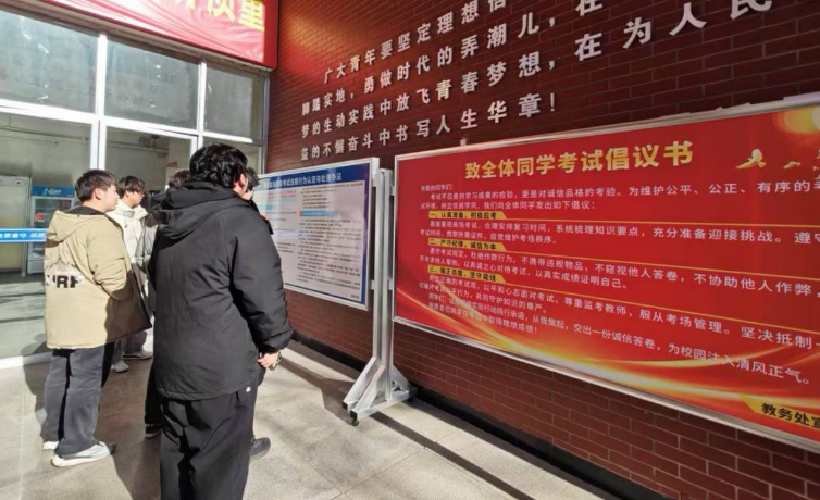 2026年1月6日至11日,我校2025-2026学年第一学期期末考试工作圆满结束。本次考试在王太校区与滨河校区同步进行,共设置考场1021场次,涵盖本、专科考试课程269门。执行校长谷朝众,副校长张九鼎、陈芳,以及教务处、学生处、各二级学院主要负责人深入考场开展巡查与指导。