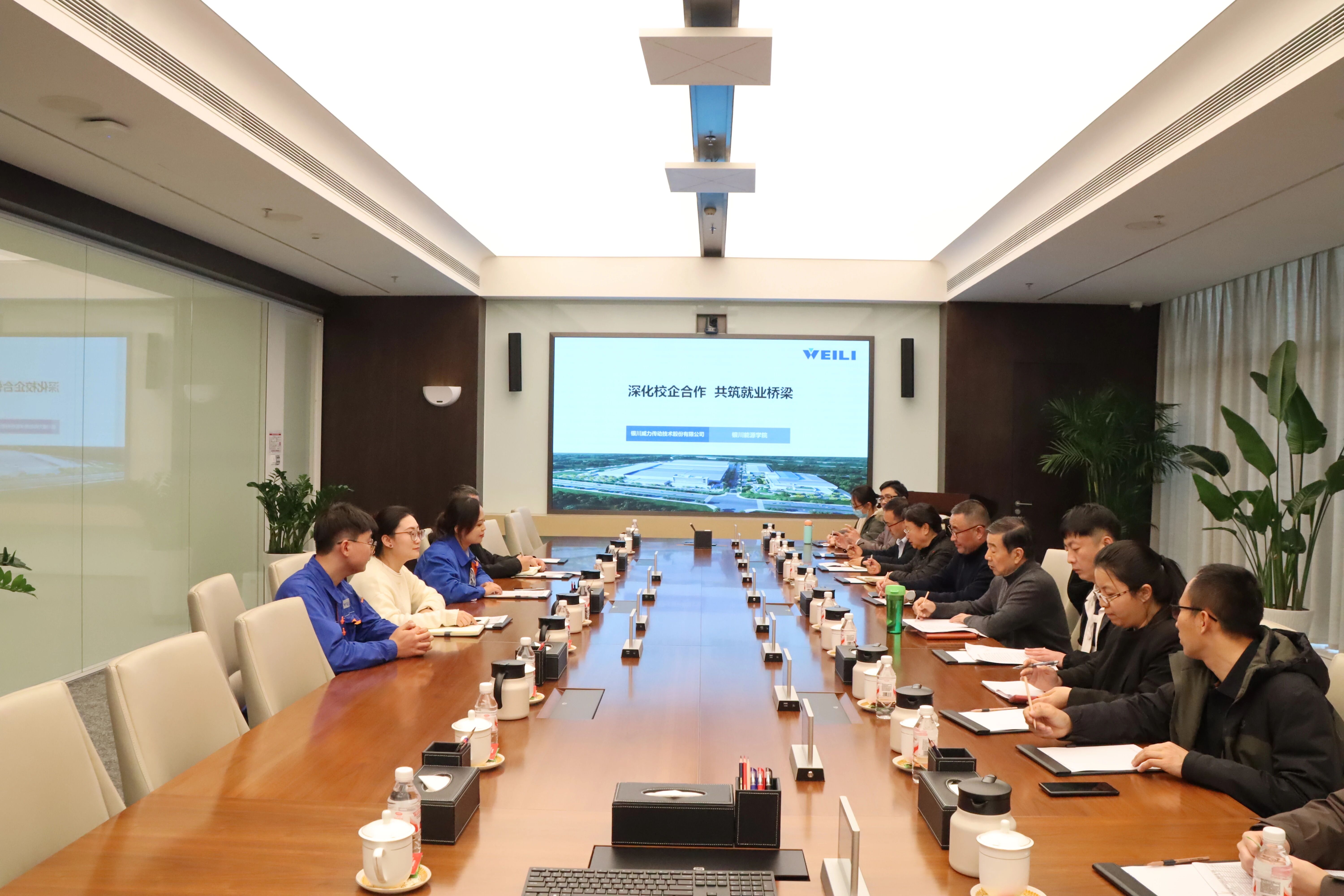 在银川威力传动技术股份有限公司,校领导一行沿参观通道深入生产一线,实地察看企业生产流程,近距离感受企业发展活力与技术实力。座谈会上,企业负责人详细介绍了公司产业布局及质量管理、技术研发等岗位的人才需求标准,明确了机械、机电类相关专业的招聘意向与岗位需求。执行校长谷朝众向企业介绍了我校办学特色、专业优势及2026届毕业生整体情况;副校长陈芳介绍了我校学生综合素质与实践能力培养等成效;党委书记张学举关切询问我校毕业生在企业的工作表现与生活状况。双方现场达成共识,将于本月举办专场招聘会,将访企业、拓岗位的成效落到实处。