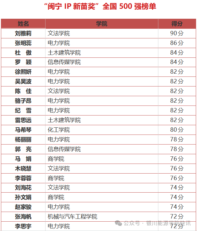 经过 IP 青苗选拔赛层层筛选,该校学子凭借扎实专业功底和出色检索技能脱颖而出。文法学院刘雅莉以 90 分位列校内第一,电力学院张明蕊、土木建筑学院杜傲等 30 人分别斩获 70-86 分的优异成绩,成功跻身全国 500 强榜单。