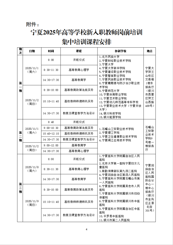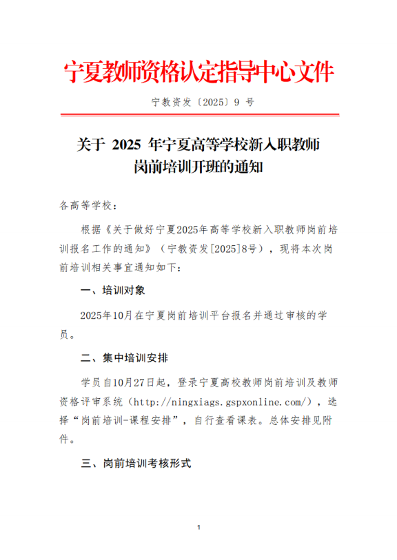 关于2025年宁夏高等学校新人职教师 岗前培训开班的通知