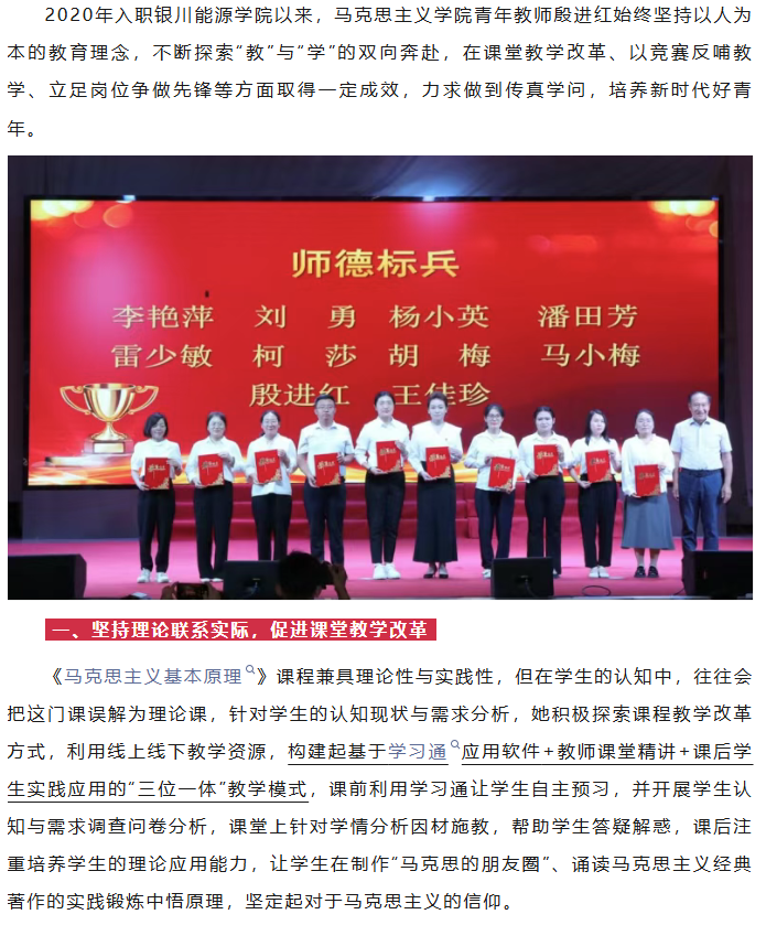 坚守教育初心 勇担育人使命 | 记银川能源学院师德标兵殷进红坚守教育初心