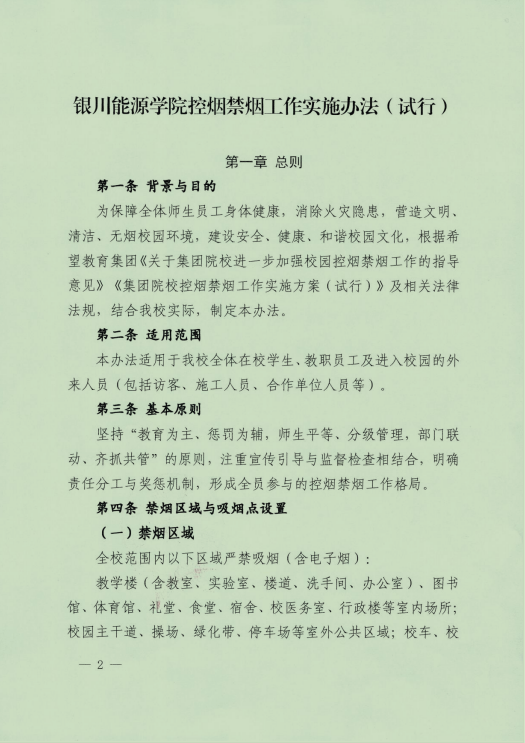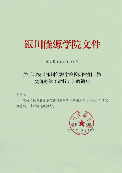 关于印发《银川能源学院控烟禁烟工作实施办法(试行)》的通知