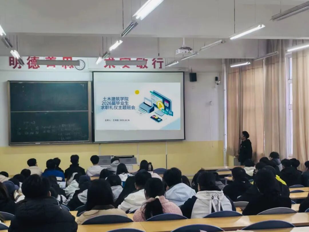 为进一步增强2026届毕业生就业指导与服务的实效性,帮助学生提前适应职场环境,提升职业素养与综合竞争力,10月30日,土木建筑学院召开毕业生求职礼仪主题班会,旨在帮助面向即将开启工作生涯的毕业生,为他们的职业发展保驾护航。