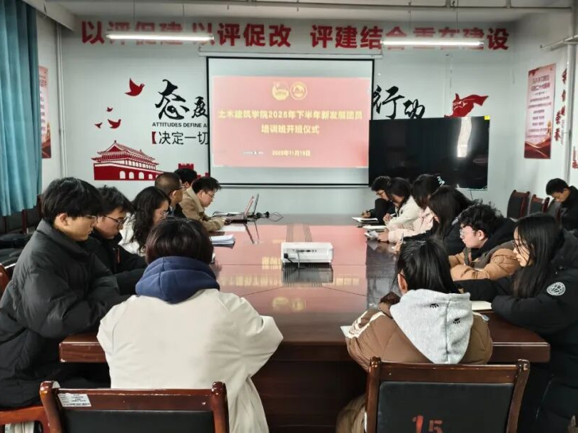 11月19日,土木建筑学院在学院会议室举行2025年下半年新发展团员培训班开班仪式,旨在加强新发展团员的理想信念教育,引导团员青年厚植爱党、爱国、爱社会主义情感,明确新时代团员的责任与担当,为成长为有理想、敢担当、能吃苦、肯奋斗的新时代合格共青团员奠定基础。