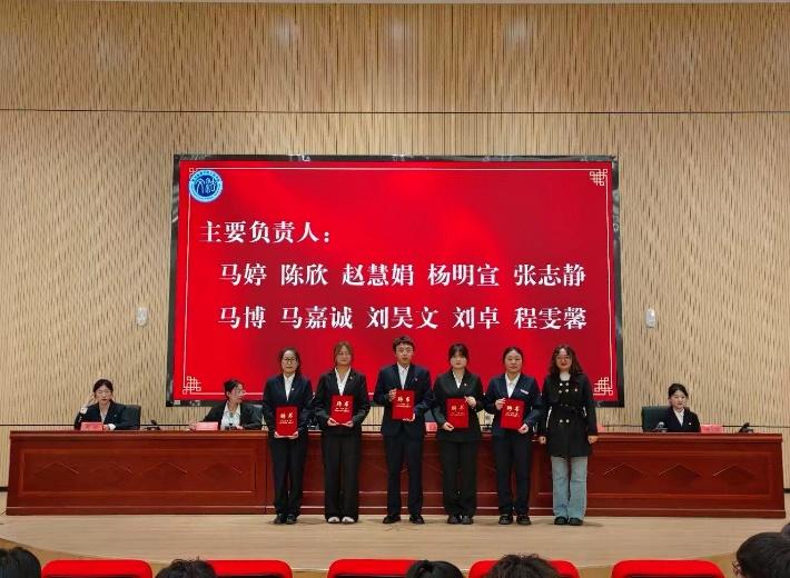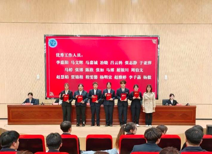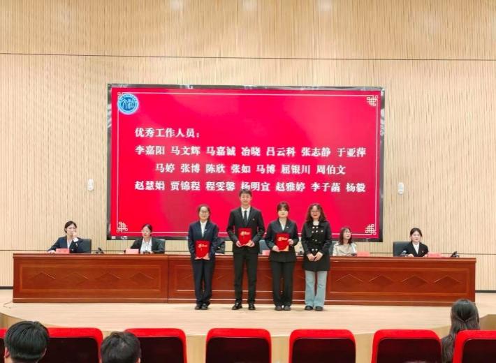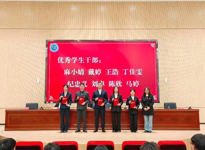 在热烈的掌声中,颁奖环节有序进行。朱兵、马金凤分别为主要负责人、主席团成员颁发聘书,马金凤、刘芳分别为优秀学生干部、优秀工作人员颁证书,表彰其贡献。