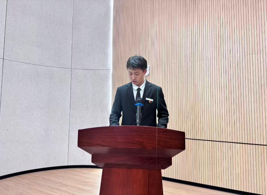 第十届学生分会执行主席刘卓代表新一届学生干部发言。他表示,将带领第十届学生会全体成员牢记做“青年友”,不做“学生官”的宗旨,以服务同学为核心,以提升能力为目标,积极创新工作方法,扎实开展各项活动,努力打造清新阳光、务实高效的学生组织。