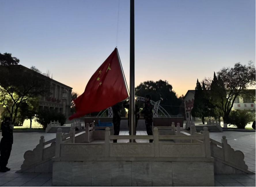 清晨,伴随着初升的朝阳,护旗手迈着整齐有力的步伐,护送国旗走向升旗台。当庄严的国歌奏响,鲜艳的五星红旗迎着晨光冉冉升起,全体人员面向国旗肃立,行注目礼,目光追随着国旗缓缓上升,现场氛围庄严肃穆。
