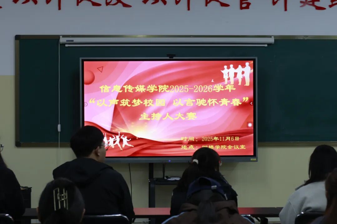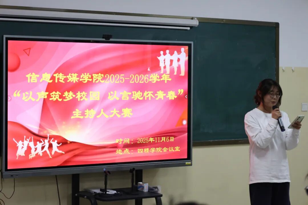 为培养同学们的口头表达能力、锻炼交际应变能力与舞台表现力,同时为学院播音主持工作及各类校园活动注入新鲜血液,11 月 6 日,由信息传媒学院学生分会文体社团部主办的主持人大赛初赛在学院会议室顺利举行。本次活动的评委包括学生会秘书长郭晶老师及各学生组织骨干成员。