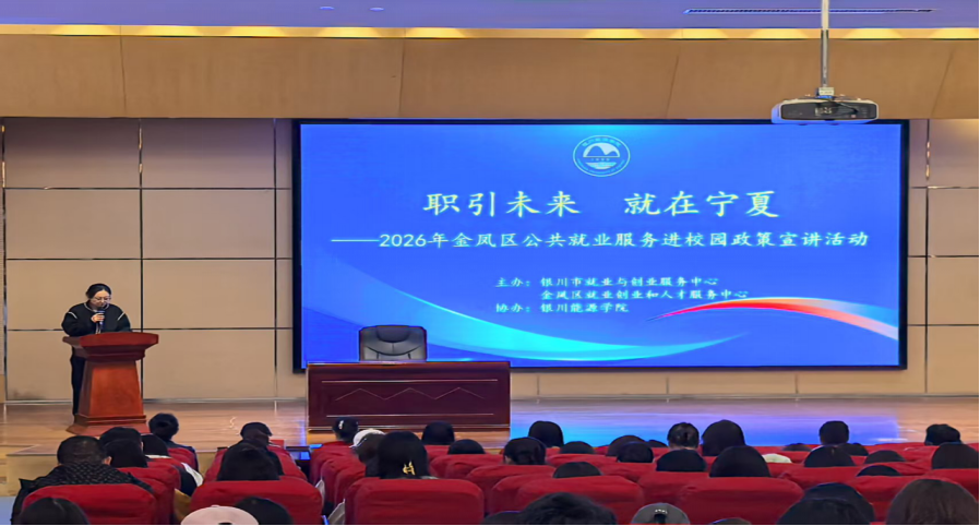 为进一步落实就业优先战略,深化校地合作,推动公共就业服务向校园延伸,4月10日上午,由金凤区就业创业和人才服务中心主办的“职引未来 就在宁夏2026年金凤区公共就业服务进校园政策宣讲活动”在图书馆一楼报告厅举行。金凤区就业创业和人才服务中心人才科主任王慧、就业见习优秀代表杨梦莹及我校300余名学生代...