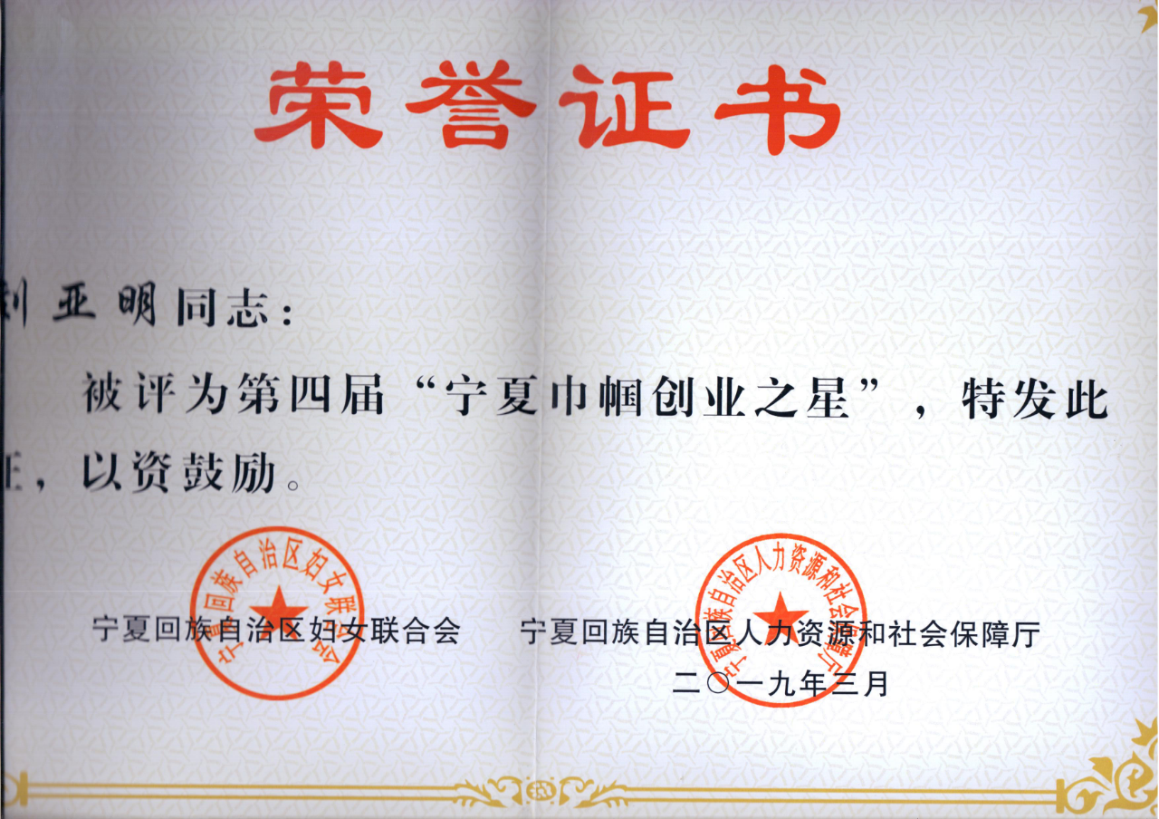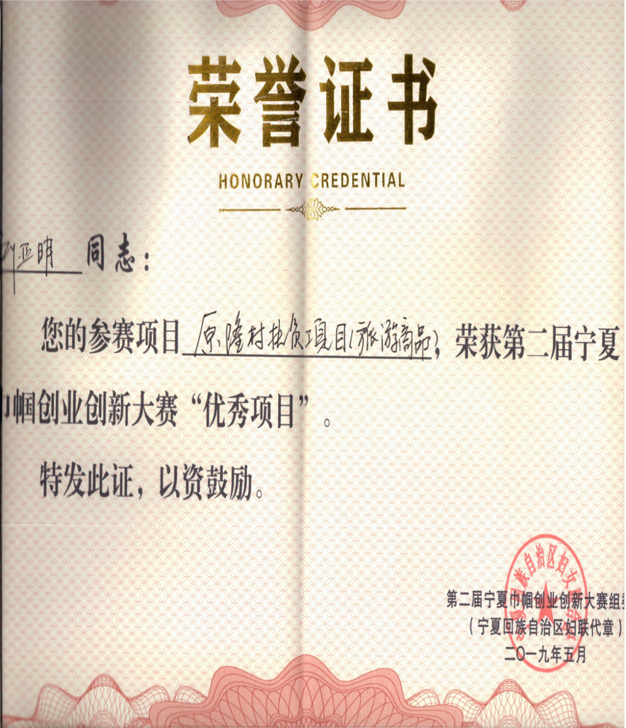为了在原隆村开展扶贫,她成立了宁夏昱嵘文化旅游有限公司,开发的多个项目获得各级各类奖励,培养了一批农民非遗传承人,仅2019年就培养了10位原隆村村民成长为非遗传承人。2020年成为自治区非物质文化传承基地,同时获批自治区级非遗扶贫就业工坊。本人被评为第四届"宁夏巾帼创业之星",荣获2020年度宁夏非遗年度人物荣誉称号等。