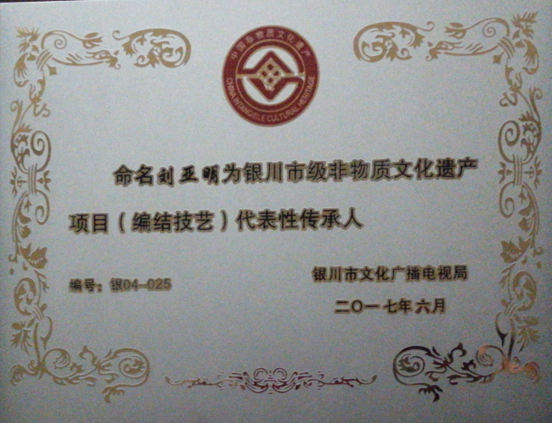 2011年退休后,本打算和老伴儿一起养养花,种种草,种种蔬菜和粮食,过一过田园般生活颐养天年的刘老师,被永宁县文化局(机构改革现为永宁县文旅局)找到,希望她能把编结这项技艺传授下去。2014年刘老师被评为县级非遗文化传承人,同年8月,在县文化局和非遗中心的邀请下,她带着将非遗作品转化为商品的美好初心走进闽宁镇原隆村教学,从那时起,也开始了闽宁镇非遗资源分布调查。2017年,她开始在原隆村注册公司,开设软陶制作、壁挂、西北刺绣、剪纸、编结等多种技艺的扶贫培训班,拉开了非遗产品订单培训,让移民妇女实现居家就业的序幕。