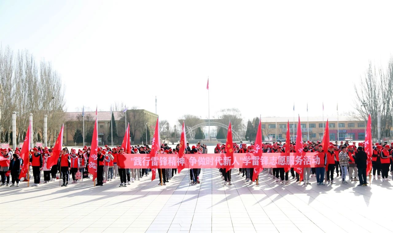 为弘扬雷锋精神和"奉献、友爱、互助、进步"的志愿服务精神,进一步增强大学生"服务学校、服务社会、增长才干"的意识,在第58个"学习雷锋纪念日"暨第22个"中国青年志愿者服务日"到来之际,3月5日上午10:00,银川能源学院在学政广场举行了"学雷锋志愿服务活动"启动仪式。校党委委员、副校长张九鼎出席启动仪式,学生处、校团委负责同志、各二级学院党团组织负责人、师生志愿者代表约350人参加了活动,仪式由校团委张旭坤同志主持。
