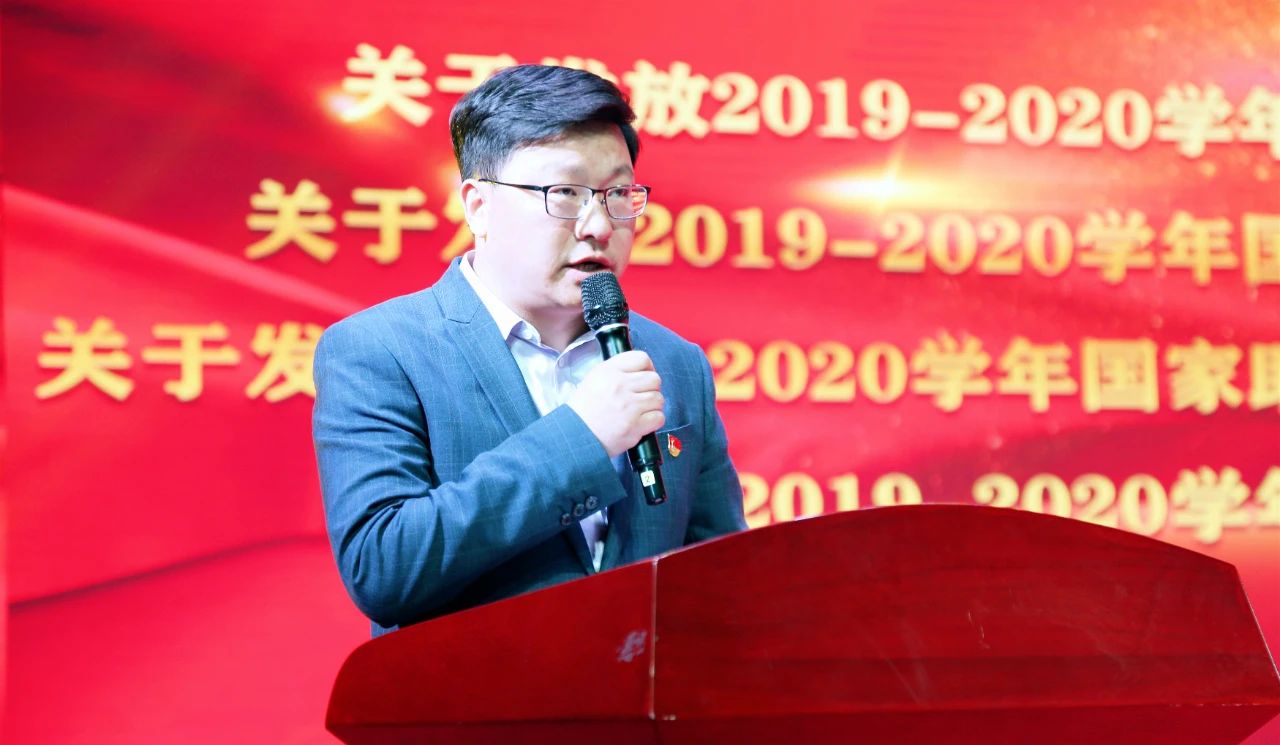 副校长张九鼎宣读了《银川能源学院关于发放2019-2020学年国家奖学金、国家励志奖学金的决定》《银川能源学院关于发放2019-2020学年国家助学贷款单项奖学金的决定》《银川能源学院关于发放2019-2020学年希望奖学金的决定》。