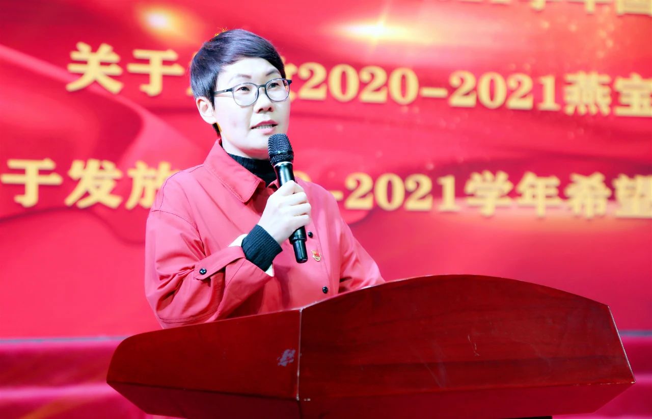 党委委员、党政办公室主任赵桂生为燕宝助学金获得者代表颁奖