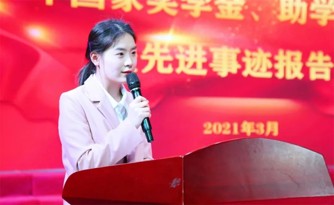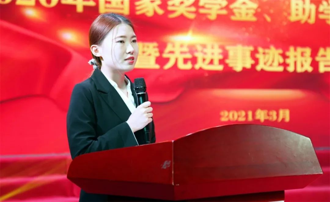 国家奖学金获得者吕浩东、马佳慧,国家励志奖学金鹿雪,国家助学贷款单项奖学金赵敏敏作为获奖学生代表发言。