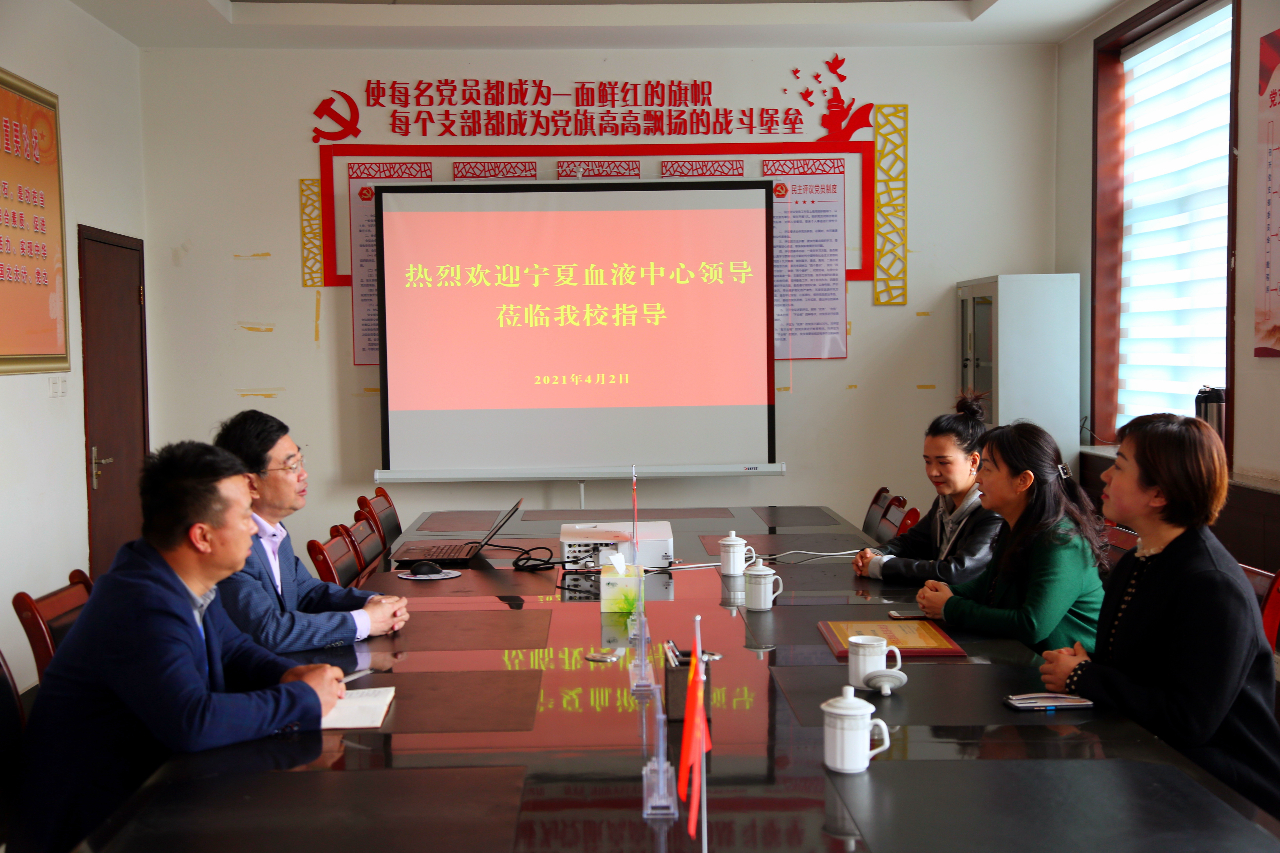4月2日上午,宁夏血液中心副主任邵峰一行来校,授予学校"2018-2019年度全国无偿献血促进奖单位奖"奖牌。自治区政府督导专员、学校党委书记赵春光会见了邵峰一行并代表学校接受奖牌。