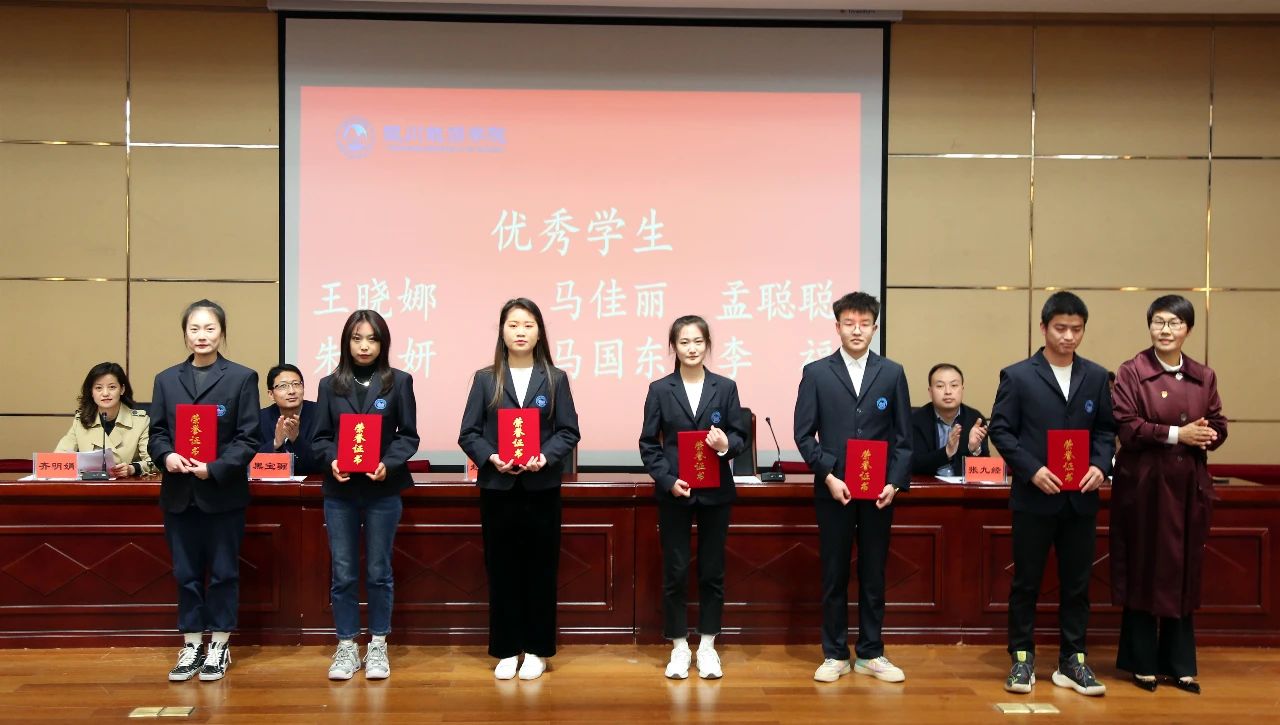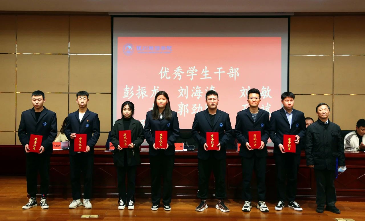 党委副书记、执行校长赵平为"优秀学生干部"颁发荣誉证书;校长助理刘兆侠为"优秀学生"颁发荣誉证书;教务处副处长黑宝骊为"团结互助、乐于奉献奖"颁发荣誉证书。