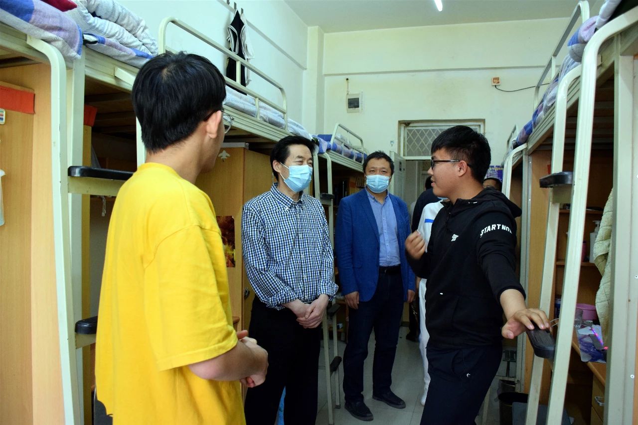 慰问中,孟校长与同学们亲切交谈,详细了解同学们假期规划、学校后勤保障和常态化疫情防控措施。他说,今天是你们盛大的节日,我谨代表学校向你们表示节日的祝贺,祝愿你们在学校这个和谐温馨的大家庭里生活快乐、学习进步。他叮嘱同学们要遵守学校常态化疫情防控相关要求,提高防范意识,加强个人防护和公共卫生,出行佩戴口罩、勤洗手、公寓开窗通风,养成良好的生活习惯;假期要合理规划,安排好个人学习与生活,勤思考,多读书,不断充实自己。