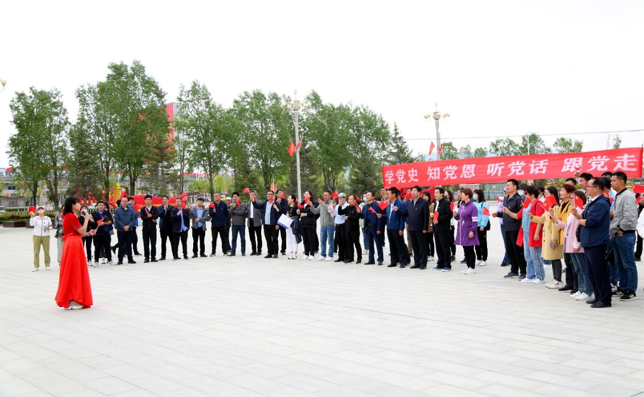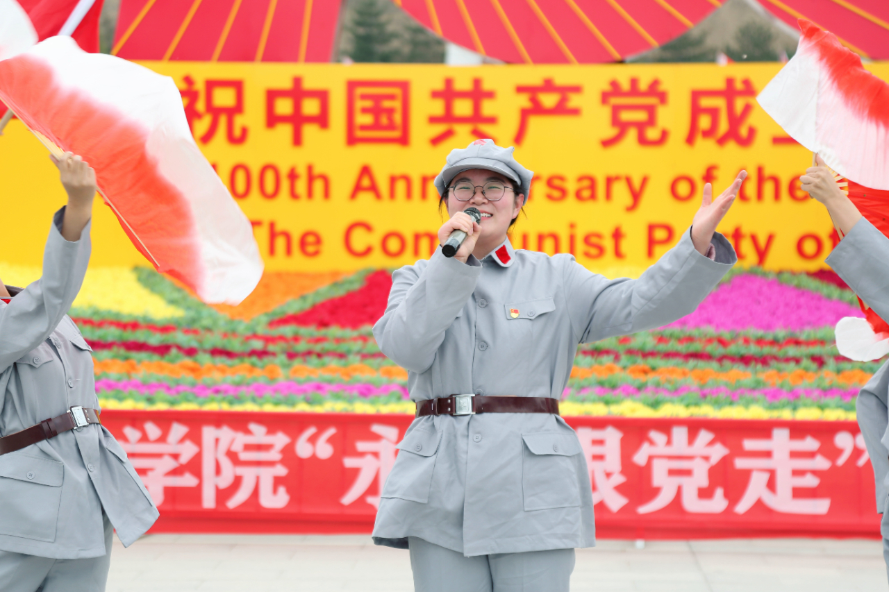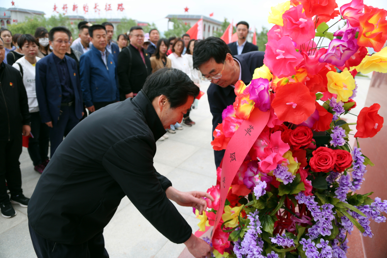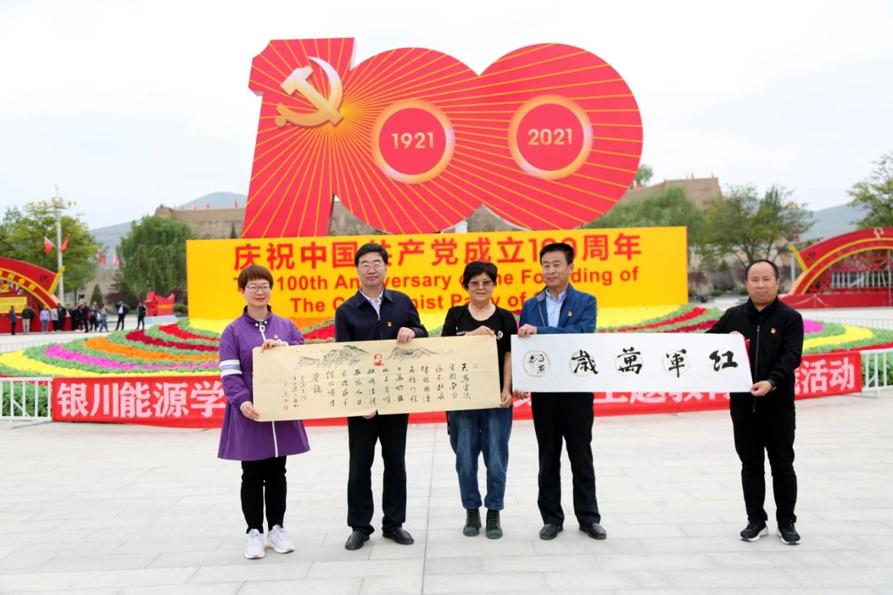 为认真学习贯彻习近平总书记在党史学习教育动员大会上的重要讲话精神,践行总书记"走好新的长征路"的伟大号召,推动全校"学党史、知党恩、颂党情、跟党走、展风采"活动深入开展,2021年5月21日,我校组织优秀共产党员、优秀党务工作者及优秀教师代表近80人赴西吉县将台堡红军长征会师纪念馆开展"永远跟党走"红色主题教育实践活动。自治区教育工委党建处张鲁生处长,学校党委书记赵春光、理事长吴玉聪、执行校长孟兆怀、党委副书记、纪委书记苗松,党委委员、副校长王伟、马艳丽,党委委员、校长助理刘永霞参加此次实践活动。