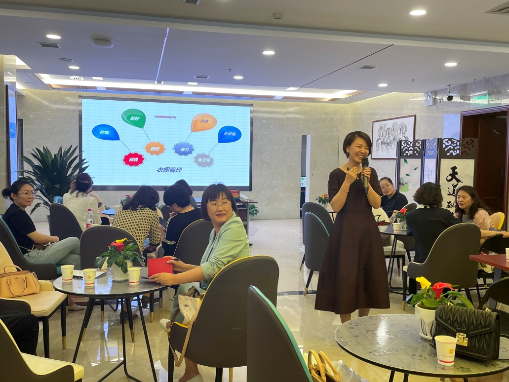 此次读书分享活动由银川市"西悅美学"衣橱管理机构衣橱管理师韩丽老师为与会工会会员分享以"断舍离"的思维方式管理衣橱。韩老师围绕活动主题,配合PPT,从衣橱的分类管理、场合管理、空间管理、风格管理、配比管理等进行了一场形象有趣、丰富多彩的分享,教大家舍弃不必要的东西,从而过上简单的生活,获得内心的平静,开启美好生活。最后,韩老师还交流展示自己进行衣橱管理的美学方法,分享自己衣橱管理的收获和喜悦,并与在坐会员一同进行衣物的叠放练习。