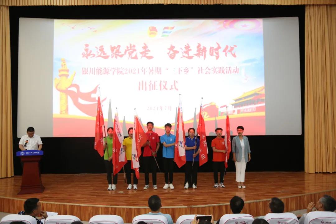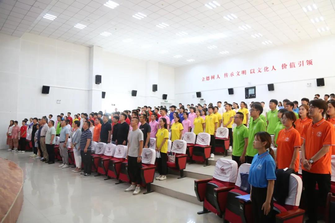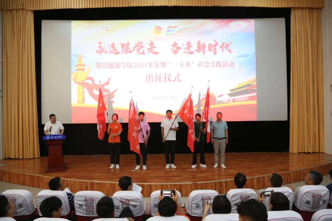 为深入学习贯彻习近平新时代中国特色社会主义思想,引导和帮助广大青年学生上好与现实相结合的"大思政课",在社会课堂中受教育、长才干、作贡献,在观察实践中学党史、强信念、跟党走,以实际行动庆祝中国共产党成立100周年,7月8日下午,我校2021年暑期"三下乡"社会实践活动出征仪式在明德影院举行。校党委委员、校长助理刘兆侠出席仪式,学工部部长李全福、校团委书记孙瑞,各二级学院党团组织负责同志、实践团队全体成员、师生代表200余人参加了此次仪式。