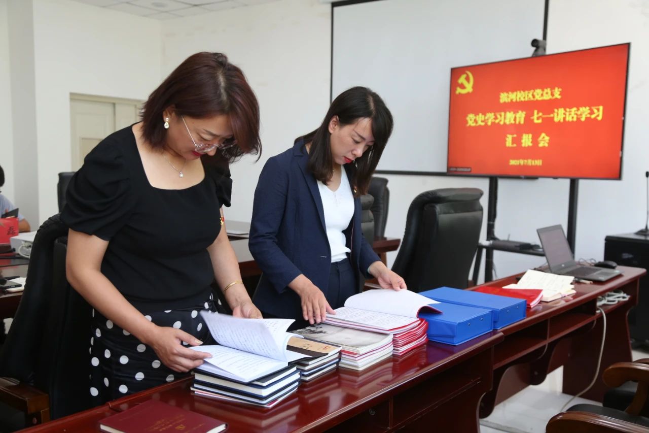 座谈会后,检查组一行还查阅了党史学习教育方案、学习笔记、心得体会等资料,并实地查看了滨河校区党史学习教育氛围营造和党建阵地建设情况。