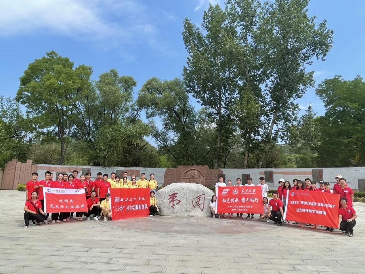 青山翠谷间,鲜艳的团旗和实践团团旗高高飘扬,大家在讲解员的带领下,仔细参观每一处景点,认真聆听每一段革命历史讲解。参观期间,我校党史学习实践团与长安大学、天津理工大学、西安美术学院等兄弟高校暑期社会实践团不期而遇,各实践团队一同参观学习,互通有无,在学习中交流,在交流中进步,一处处的展陈实物,一段段的革命故事,引发了大家的强烈共鸣,温暖与力量震撼着大家,参观期间,大家高唱《团结就是力量》等革命歌曲、与当地艺术团共同表演献礼建党百年。