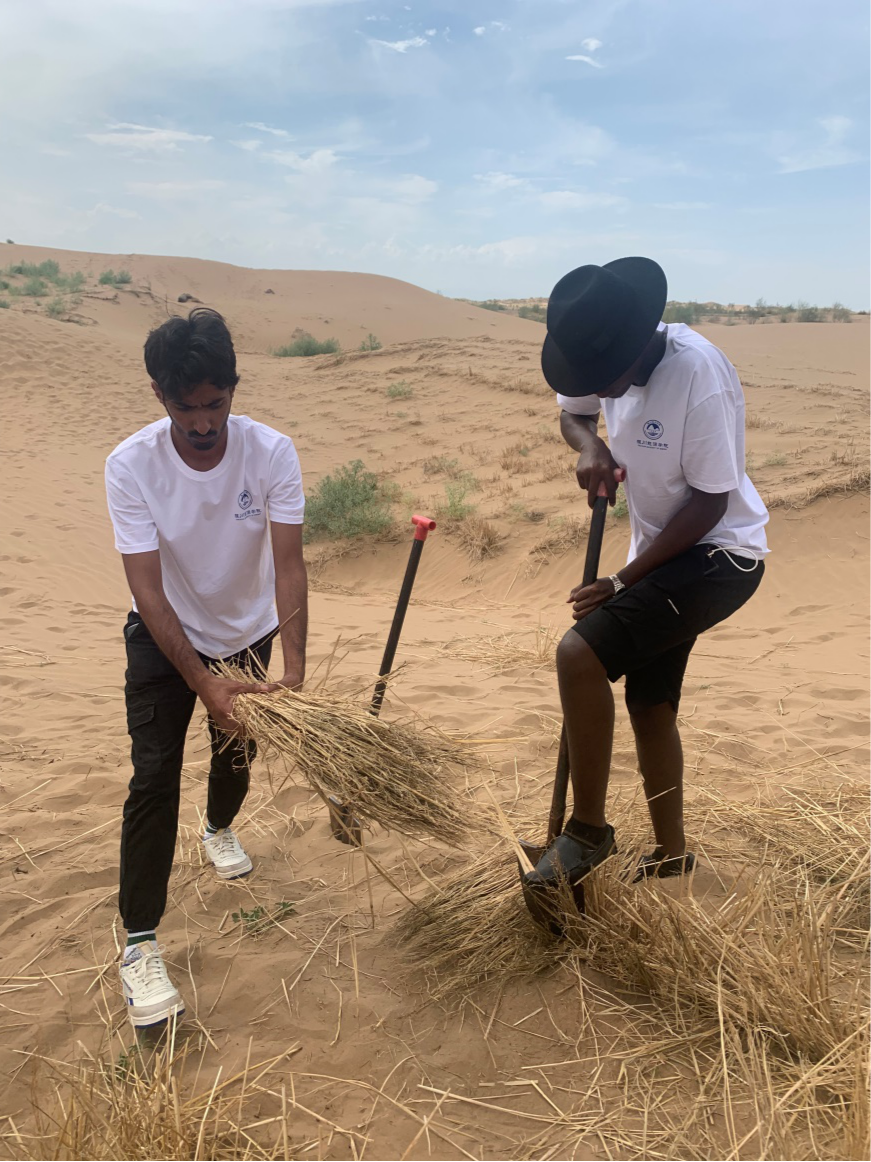 在灵武白芨滩国家级自然保护区,留学生们亲自动手建造了"草方格",体验了宁夏人防沙治沙的智慧。在全国防沙治沙展览馆中,留学生们了解了世界沙漠分布状况、土地沙化的危害以及宁夏人民在长期实践中不断探索和摸索出的治沙方法。留学生们纷纷表示,通过参观和参与活动,他们理解了防沙治沙的重要性,并且对防沙治沙人表达衷心的敬佩和感谢,正因为有了一代又一代的宁夏防沙治沙人,才使银川乃至宁夏的气候变得越来越好,环境变得越来越漂亮。