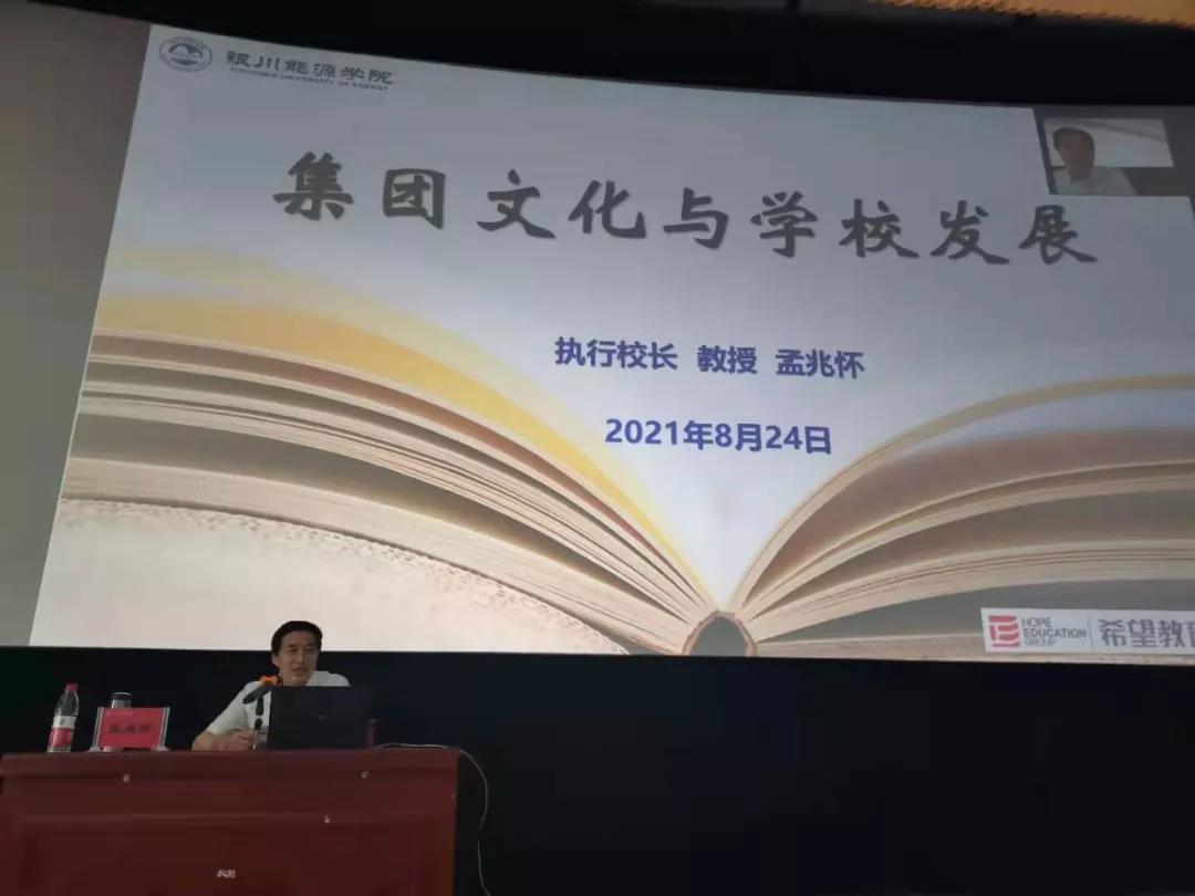 执行校长孟兆怀教授以《集团文化和学校发展》为主题,从希望教育集团的基本情况和发展规划、希望教育集团的文化、学校的基本情况和"十四五"发展规划三个方面,重点围绕集团"感恩、阳光、严谨、责任"的核心文化以及专家管理、精益管理等九大管理文化,为参训教师讲授了希望教育集团的发展历史、使命担当以及文化传承,阐释了希望教育集团从小到大不断发展壮大的文化内核。同时,他介绍了学校的发展历程,重点解读了学校的"十四五"发展规划,并就学校"十四五"规划的指导思想、规划原则、办学定位、总体目标和具体目标进行了细致透彻的讲解。他指出,学校对未来的发展有着清晰的规划,学校将以此为契机,不断努力实现跨越式发展,希望广大青年教师在这片沃土上脚踏实地、辛勤耕耘,一定能够收获喜悦,拥有广阔的事业发展空间。