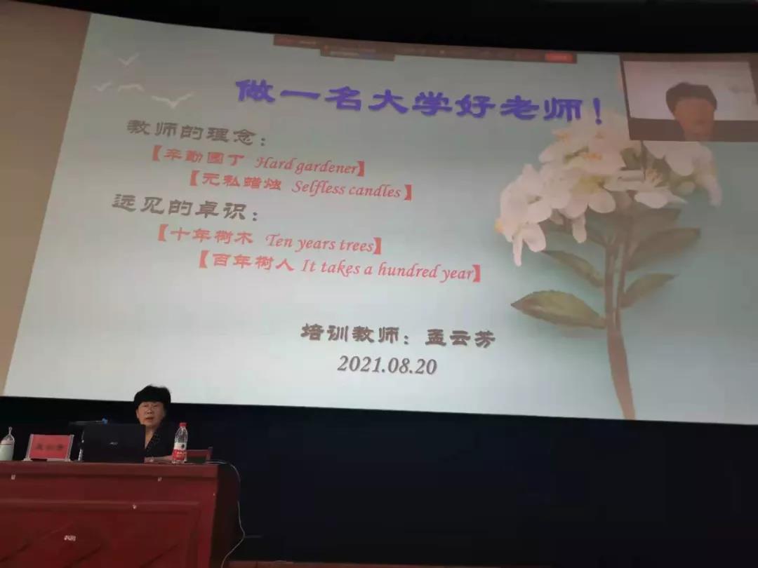 土木建筑学院院长、博士生导师孟云芳教授以《如何做一名大学好老师》为题,围绕新时代教师如何树立良好的师德形象,高尚师德和真挚教育,教师应具有坚定的理想信念和合格人格,以德立身、以身立教等四个方面,阐述了教师不仅要会教书,而且要会育人。她认为,教师崇高的思想品德对学生品德形成起到奠基作用,良好职业道德对学生品德起着催化作用,文明言谈举止对学生品质形成起着完善作用。孟云芳教授最后希望青年教师不断提高师德修养,掌握必备的教学技能,尽快成为一名优秀的大学好老师。