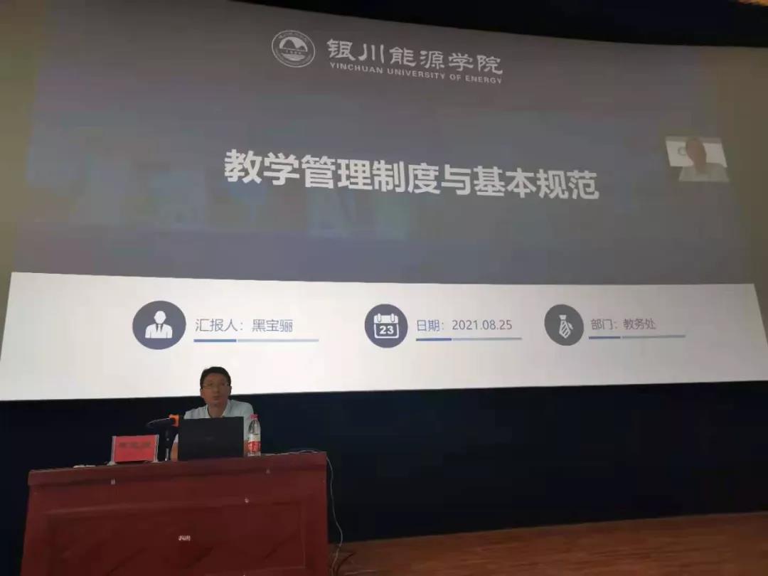 教务处处长黑宝骊应邀作了《教务管理制度和规范》报告。他从教务机构设置和工作职责,教务管理制度与基本规范,教务管理系统的使用方法等三个方面阐述了与教学相关的各项制度、规范和职能。黑宝骊结合新进教师入职时间较短的实际,讲解了教务系统使用、人培方案制定、教学大纲编写、课程教案撰写、教学日历填写、课堂授课事项等教学全过程环节,为新教师尽快熟悉课堂教学,尽早走上讲台打下了坚实的基础。