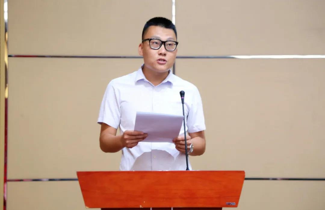 土木建筑学院教师黄越代表新教师发言。他表示在此次岗前培训中收获颇丰,通过名师专家的授课,在集团文化、学校战略发展、师德师风、教学教法、职业规划、学校制度等方面受益匪浅。他在感谢学校提供培训机会的同时,表示作为一名新教师今后要不断学习,巩固专业知识,拓展教育教学视野。