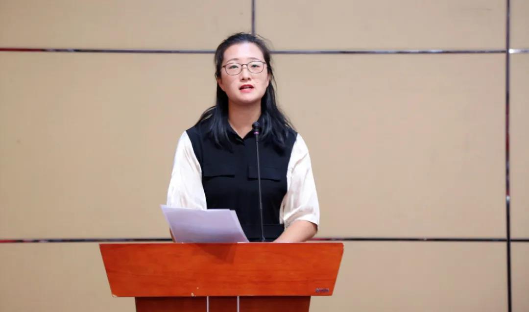 随后,优秀青年教师刘惠桥结合自己的工作经历,与大家分享了入职六年以来的心路历程。她引用古代教育家张载的名言"为天地立心,为生民立命,为往圣继绝学,为万世开太平",来表达成为一名高校教师的光荣感和使命感。她希望在座的新教师能够拥有锻造之心,不断沉淀自己;拥有爱人之心,不断感染学生;拥有钻研之心,增强创新意识,能够在学校提供的大平台上实现人生价值,早日成为学者型、研究型、智慧型的优秀教师。