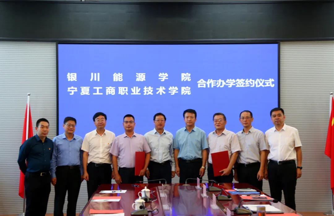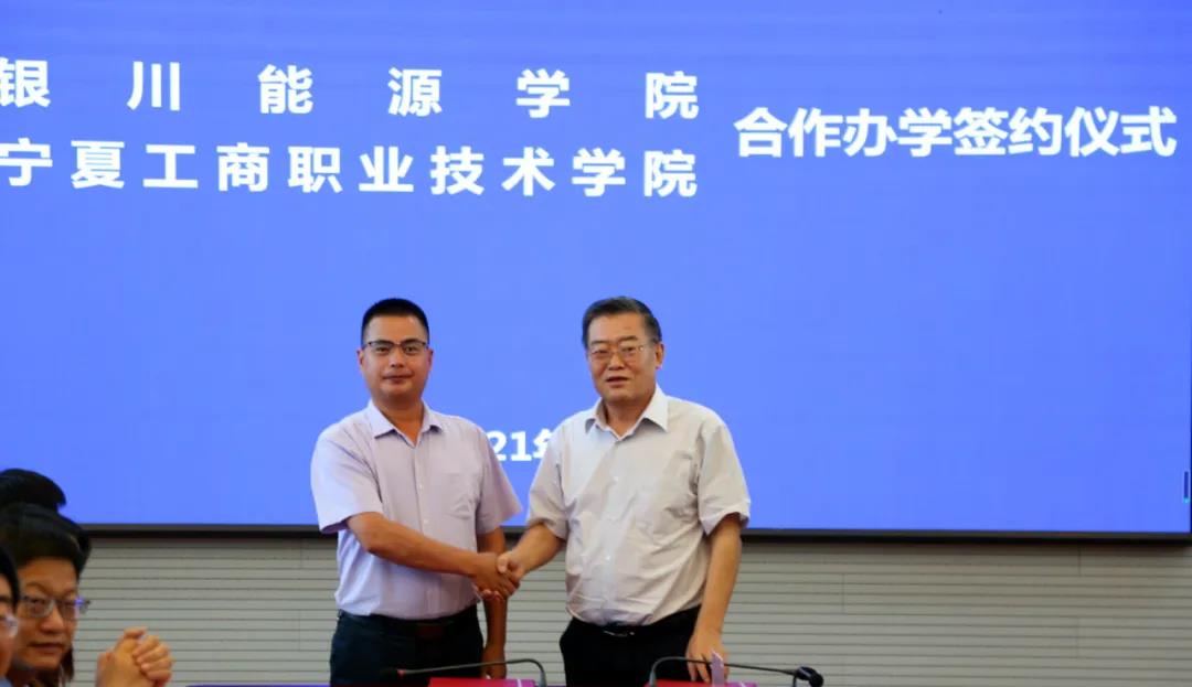 仪式上,银川能源学院理事会理事长吴玉聪与宁夏工商职业技术学院院长关世春签订了合作办学协议书。