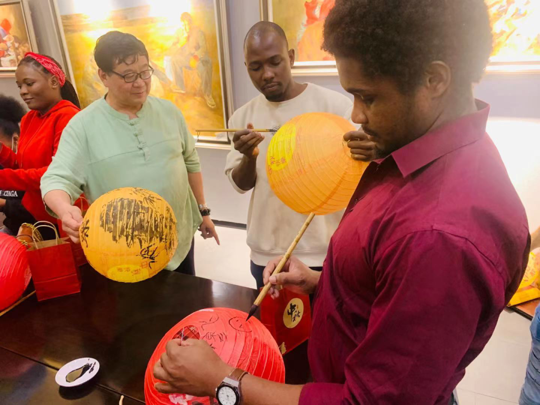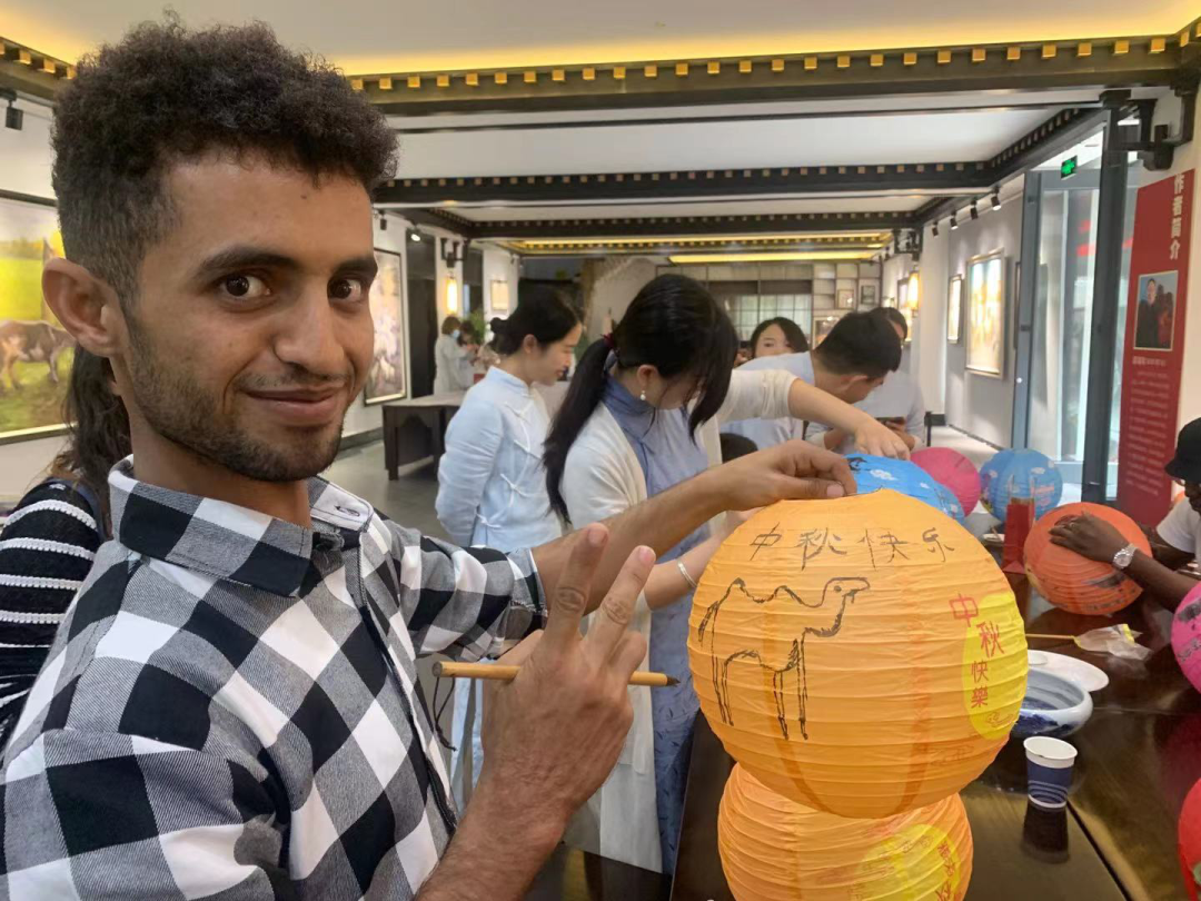 在古代灯笼是用来照明的,中秋节大街小巷挂上灯笼代表着照亮团圆的路。而手工画的灯笼也是对传统中国文化的传承,更能营造出浓厚的节日气氛。留学生们在灯笼上画上了具有美好寓意的图样,也写上了美好祝愿,以景寄相思。