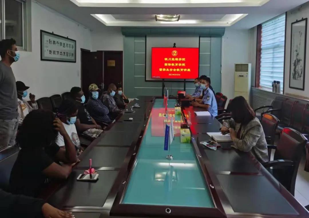 我校邀请银川市出入境管理局警官对留学生开展了法律法规介绍及安全教育主题讲座,进一步加强留学生假期安全教育和管理,筑牢安全防线。