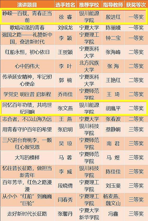 ——第二届全区高校大学生学习党史、新中国史、改革开放史、社会主义发展史主题演讲比赛获奖名单