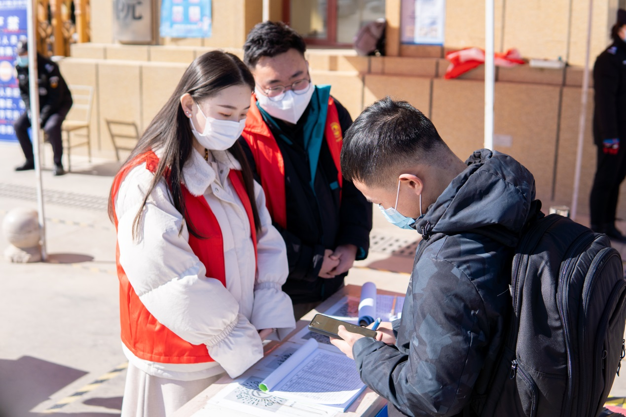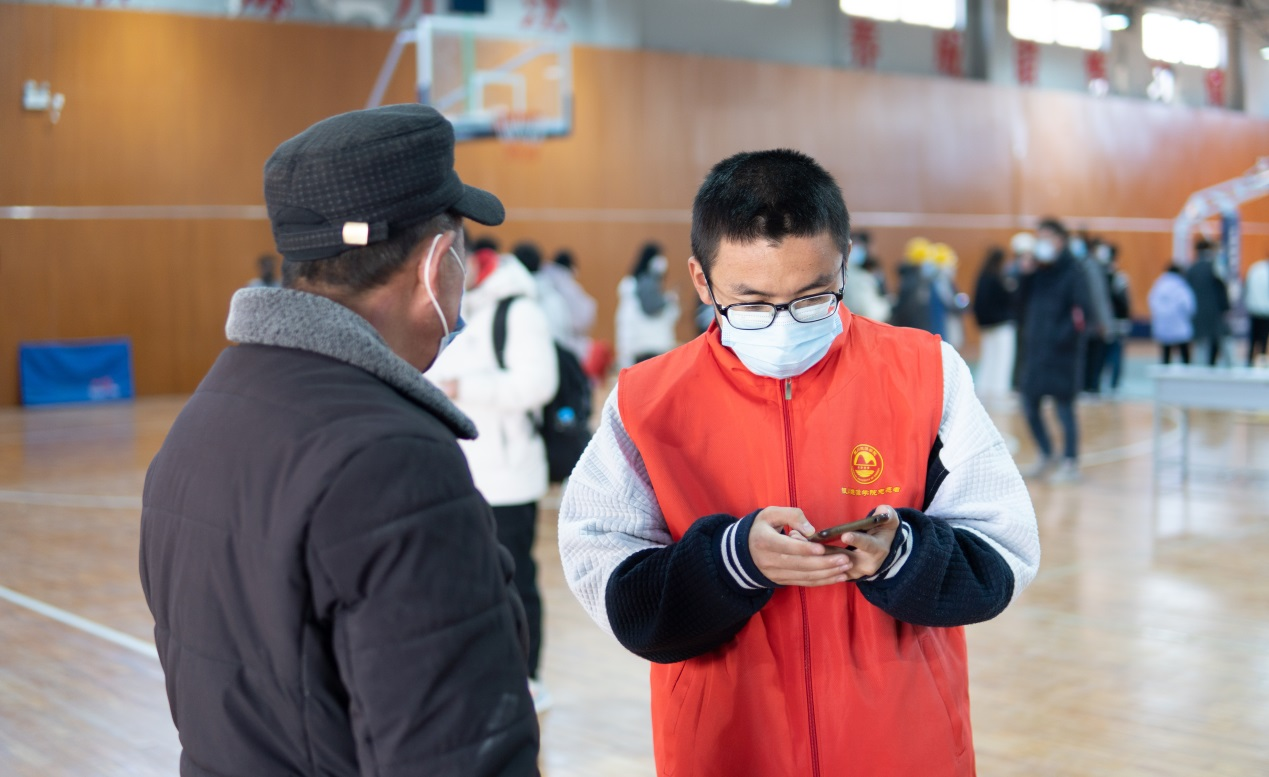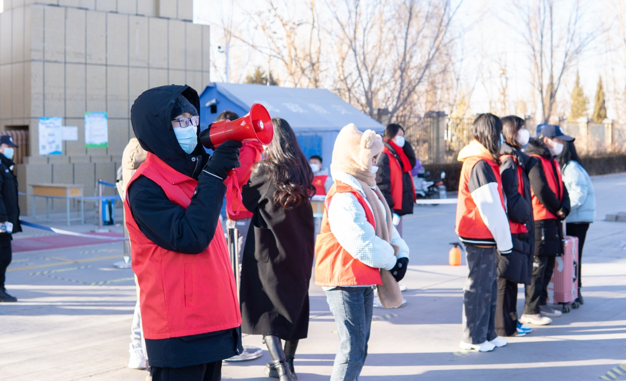经过前期的培训,志愿者们统一着装,按时到岗,协助做好疫情防控检查、核酸检测等服务。春寒料峭,但志愿者们没有退缩,一直坚守在自己的岗位上。他们激情满怀,主动担当,他们各司其职、通力协作,怀揣着一股青春热血和一份坚定的责任感,用自己的汗水诠释着志愿服务精神。志愿者们细致认真、有条不紊的工作状态让刚返校的同学直呼"暖心"。也正是这群可爱的志愿者,使开学报到更加安全有序,有效促进了各项工作顺利进行。